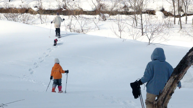 前人未踏の雪原をスノーシューでラッセルラッセル。