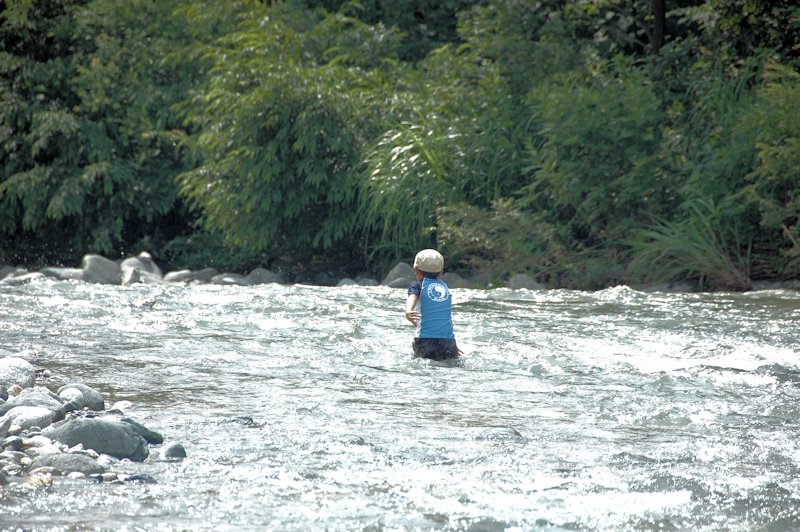 息子は我一番に川へと入っていきましたが、水がとにかく冷たい!