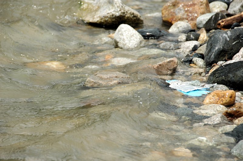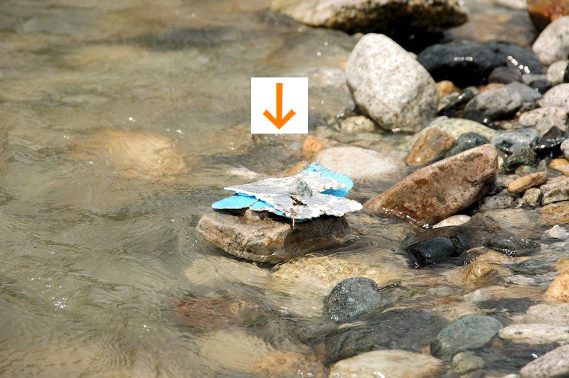 木の棒や石だけでも良いのですが、見失ったり気付かないうちの増水で