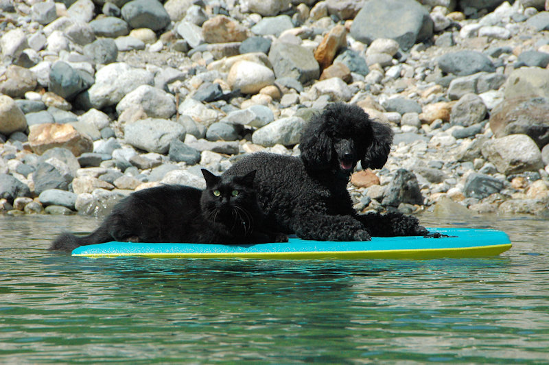 キャビィは犬かきの練習、シオ君は足を浸したぐらいかな。(^_-)