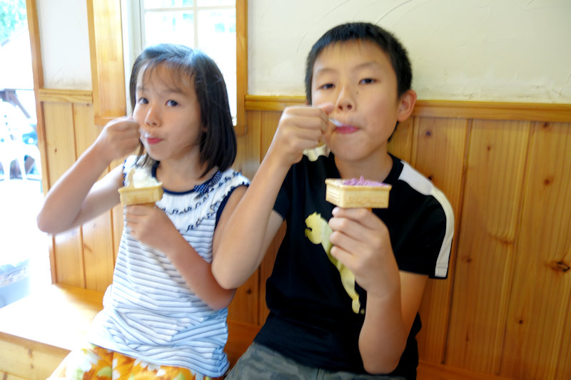一頻り遊んだら、お友達のジェラード屋さんへと繰り出します。
