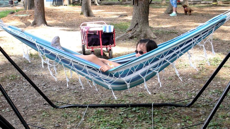 一方娘はと言うと、絶対やらないと言いながら木陰のハンモックで