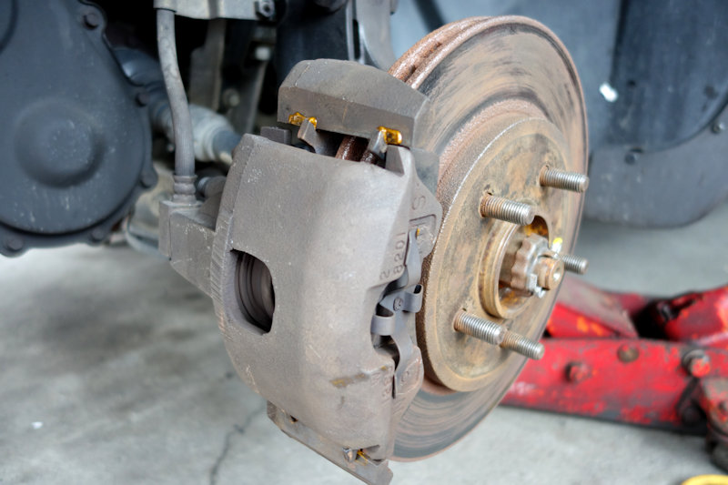 錆を削り、ブレーキのピストンやブッシュ類の動きをチェック。