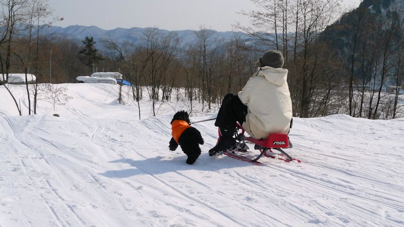 その後は好き勝手にあちこちへ行ったり、ソリの後を追いかけて行ったりと