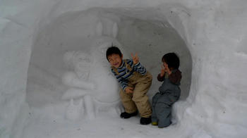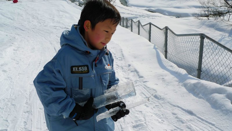 子供たちも色んなソリで滑りまくり、飽きるとお気に入りの氷柱収集。
