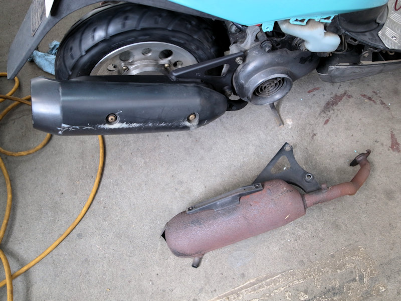 排気音が何となく高くなったので、古いマフラーは