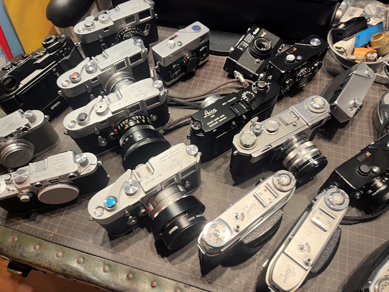 防湿庫に入れたままの、大量のフィルムカメラ。