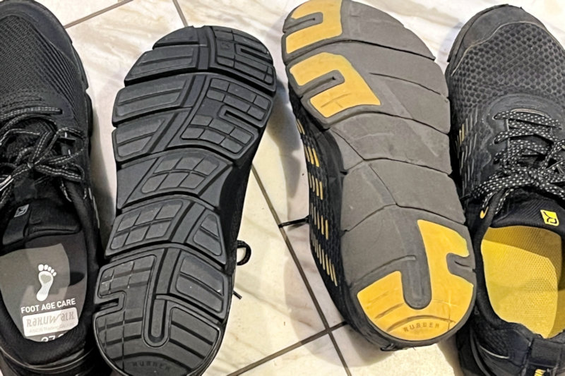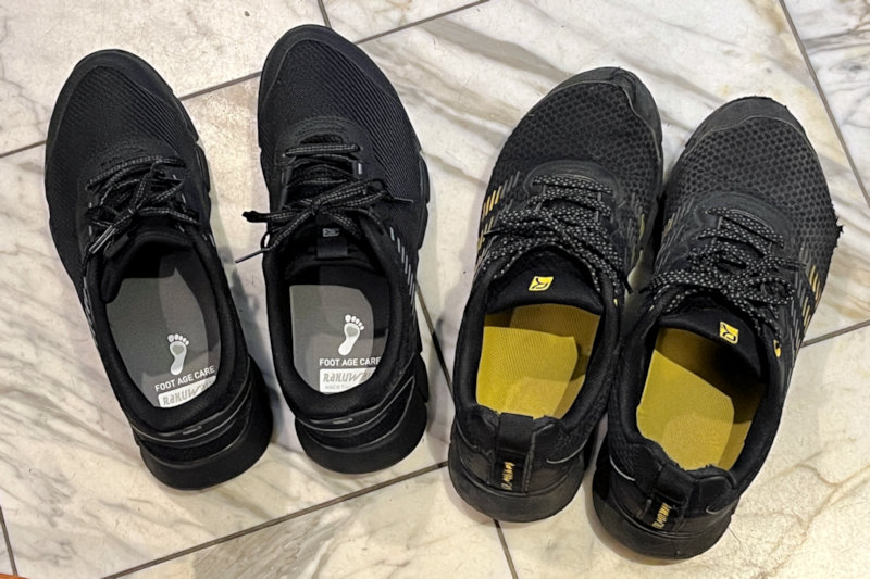 右のだらしない靴が古い方。ちょうど1年履くことが出来ました。