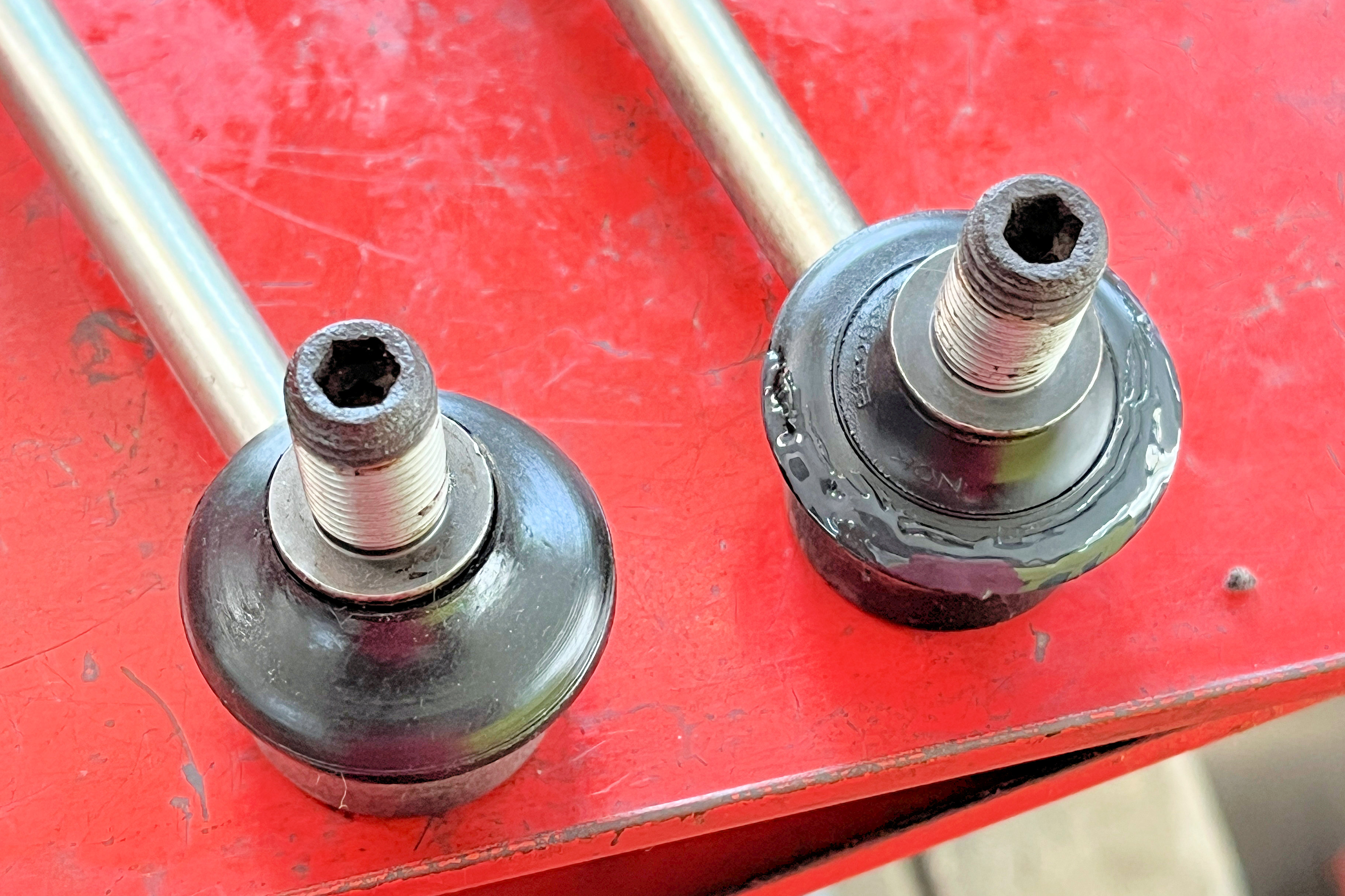 今回は、左右のリンクのブーツが切れていました。