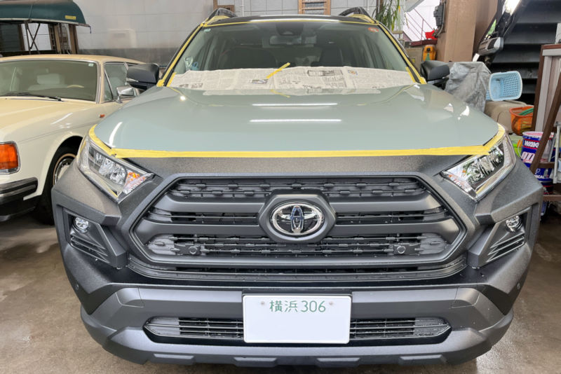 雨の中洗車をし、マスキング。