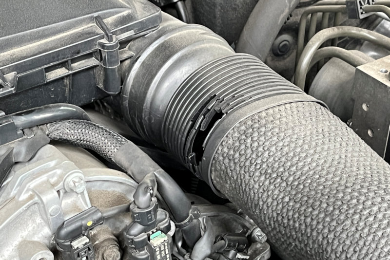 エンジンルームは、エアークリーナーまでのホースに穴。(>_<)