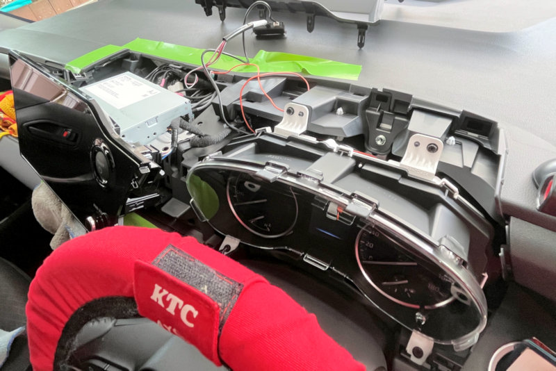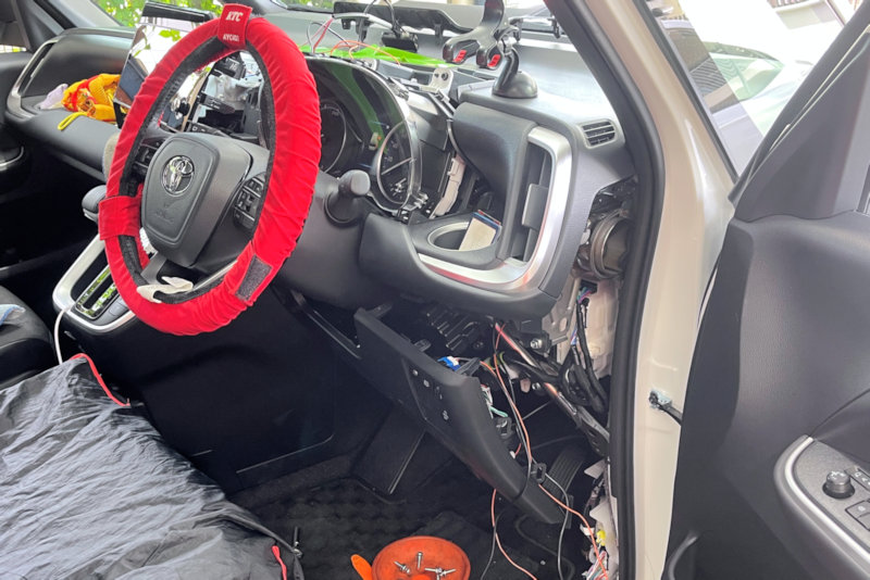 新車をバキバキとバラし、配線をしていきます。(^_^;)