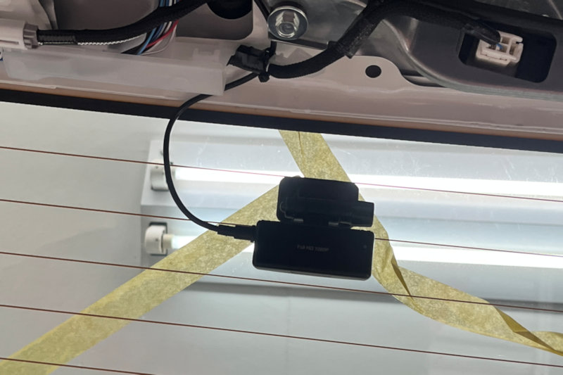 カメラを取り付け。マスキングはワイパーの水切りの位置です。