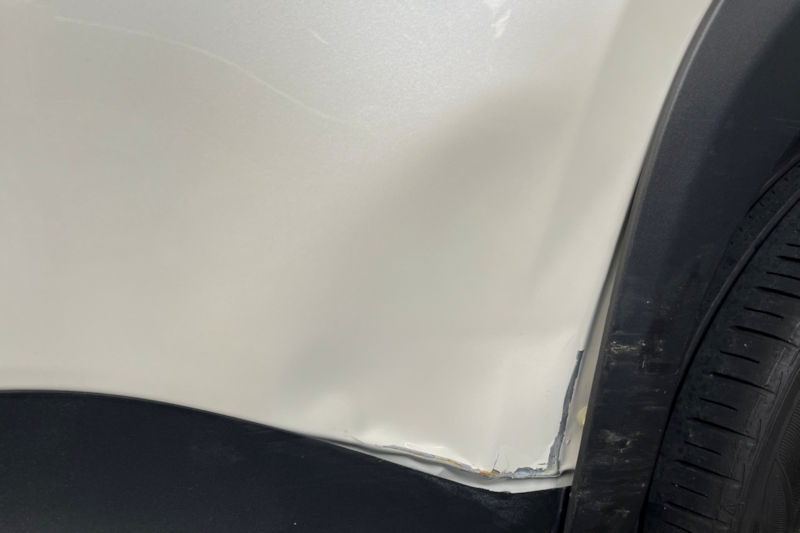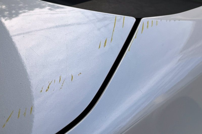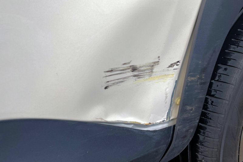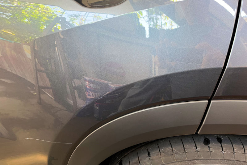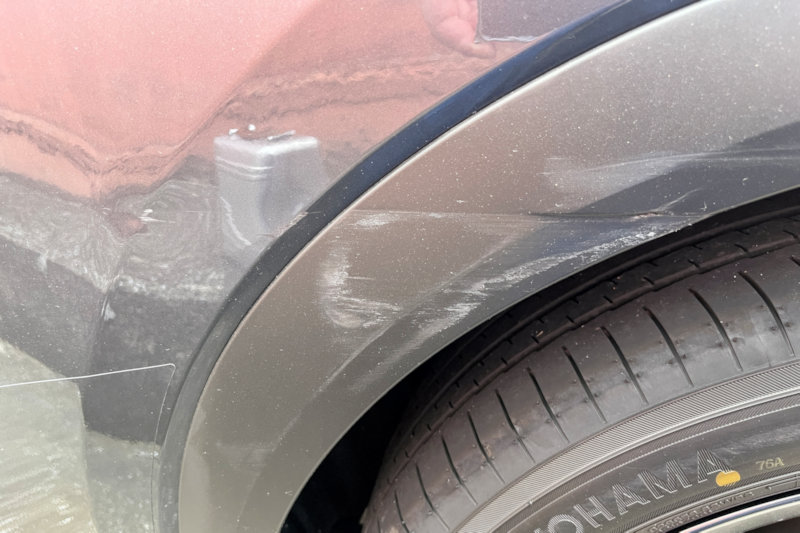 少し青い塗料も付いていたので、パーキングでの傷でしょう。