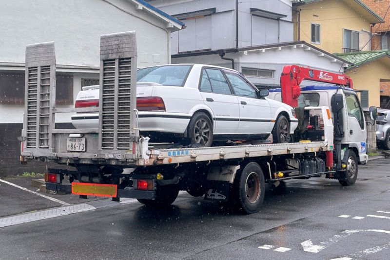 車検のお車が、レッカーで運ばれてきました。
