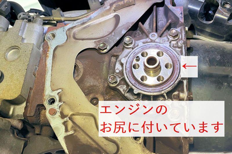 フライホイールを外し、クランクシールも交換しておきます。