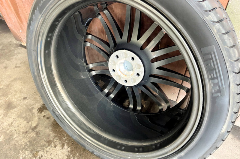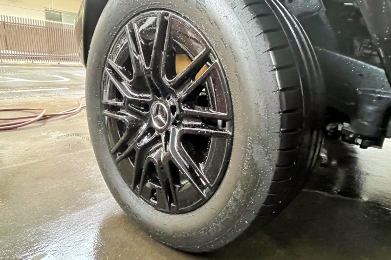 タイヤを外して、裏までピカピカにコーティング。