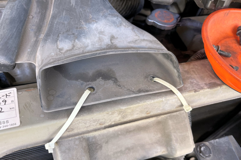 エアークリーナーの吸気口は、タイラップで固定されています。