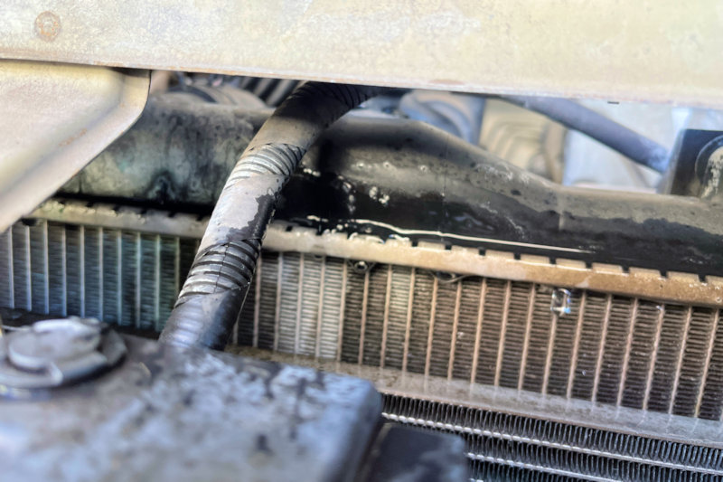 原因は直ぐに判明、ラジエターにヒビが入っていました。
