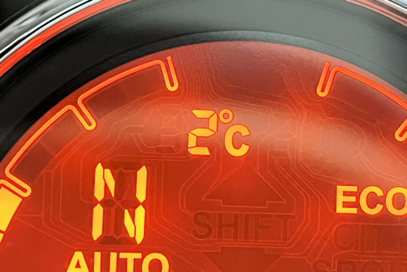 気温はほとんど上がらず、メーター内の温度計は2℃…