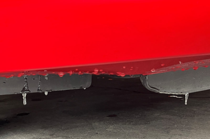 バンパー下には、相変わらず氷柱と水滴。(-_-)