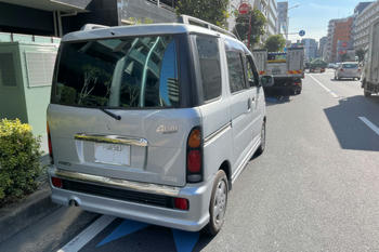 どうやら左ハンドル用のミラーが、右ハンドル車に着いています。