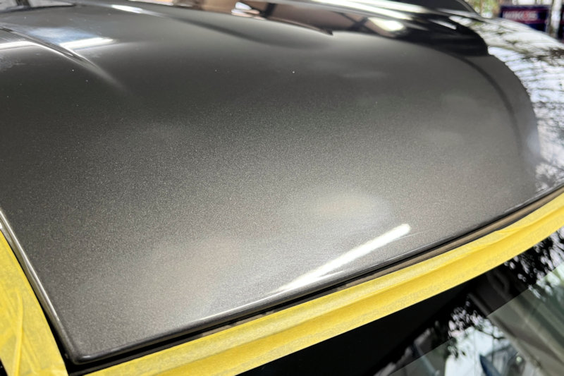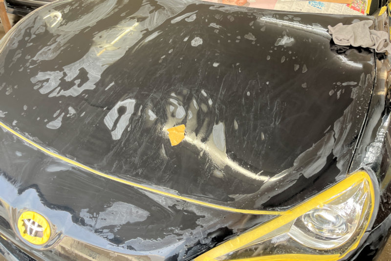 取り敢えず、ボンネットを右半分だけ磨いてみました。