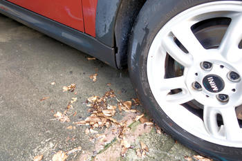 洗車をしているとフェンダー内には、大量の落ち葉が堆積。