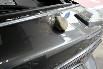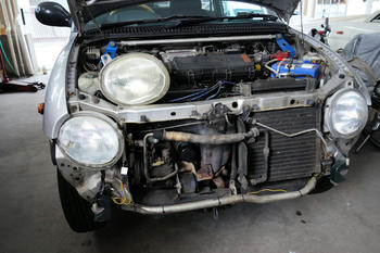 どうやらボンネットを修復したようで、塗装のミストらしい感じ。