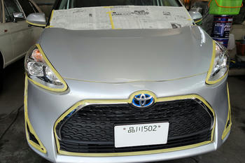 無塗装の部分に、コーティング液が付かないようにマスキング。