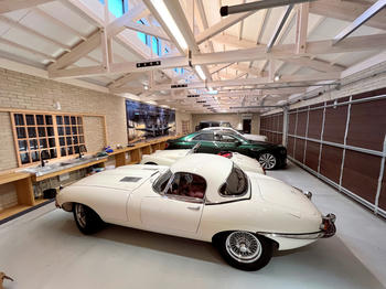 奥に見えるのはジャガーのEタイプで、このお車もとても貴重な一台。