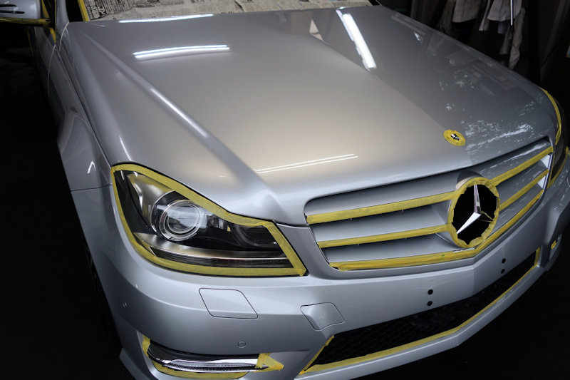 ガラスの撥水加工のご依頼もいただき、ガラスを洗ってから磨きます。