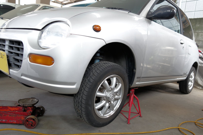 このお車はラジエターが前で、エンジンが後輪の辺りに付いているので、