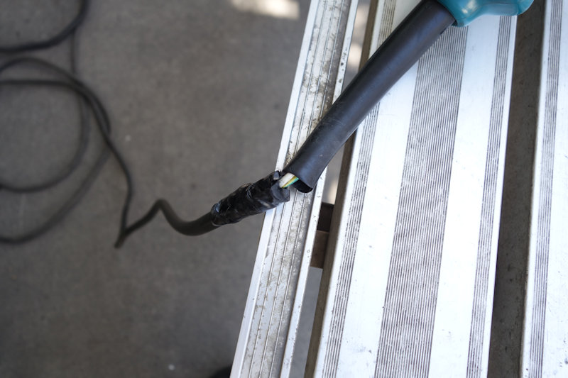 配線を途中で切って、ギボシで純正同様に作り直します。