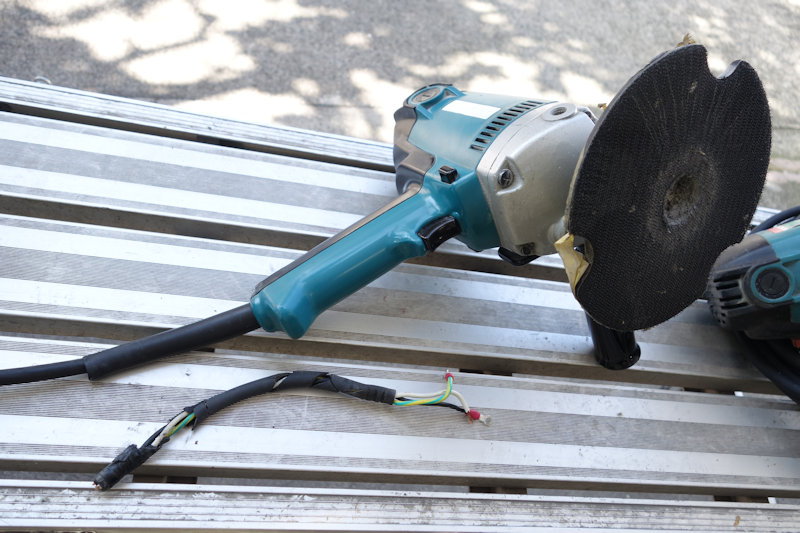 さて、研き始めて間もなく、ポリッシャーが急に動かなくなりました。(>_<)