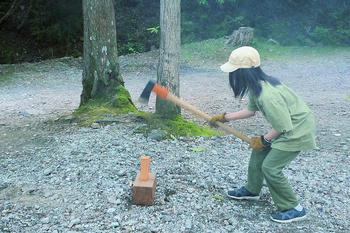 その希望を叶えるべく、到着して先ずは薪割りから。
