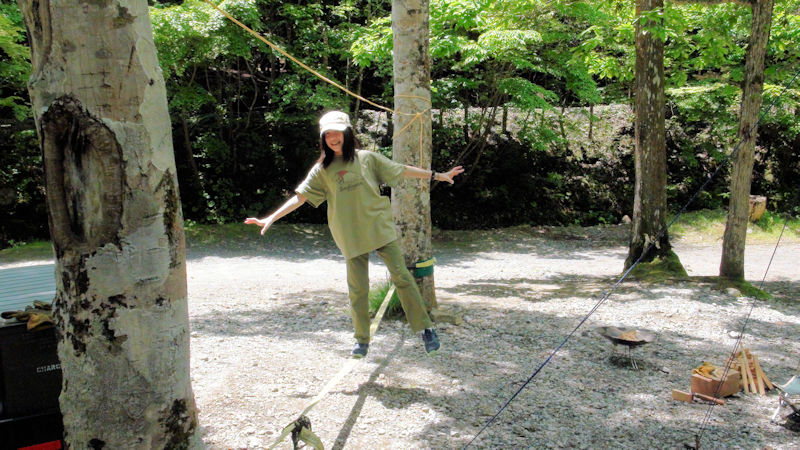 今回は娘が言い出しっぺで、薪割り・焚き火・スラッグラインを