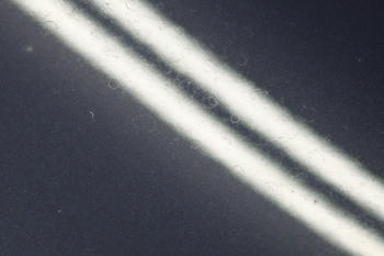 粗磨きをして、雨染みと撥水剤を綺麗に取り去ります。