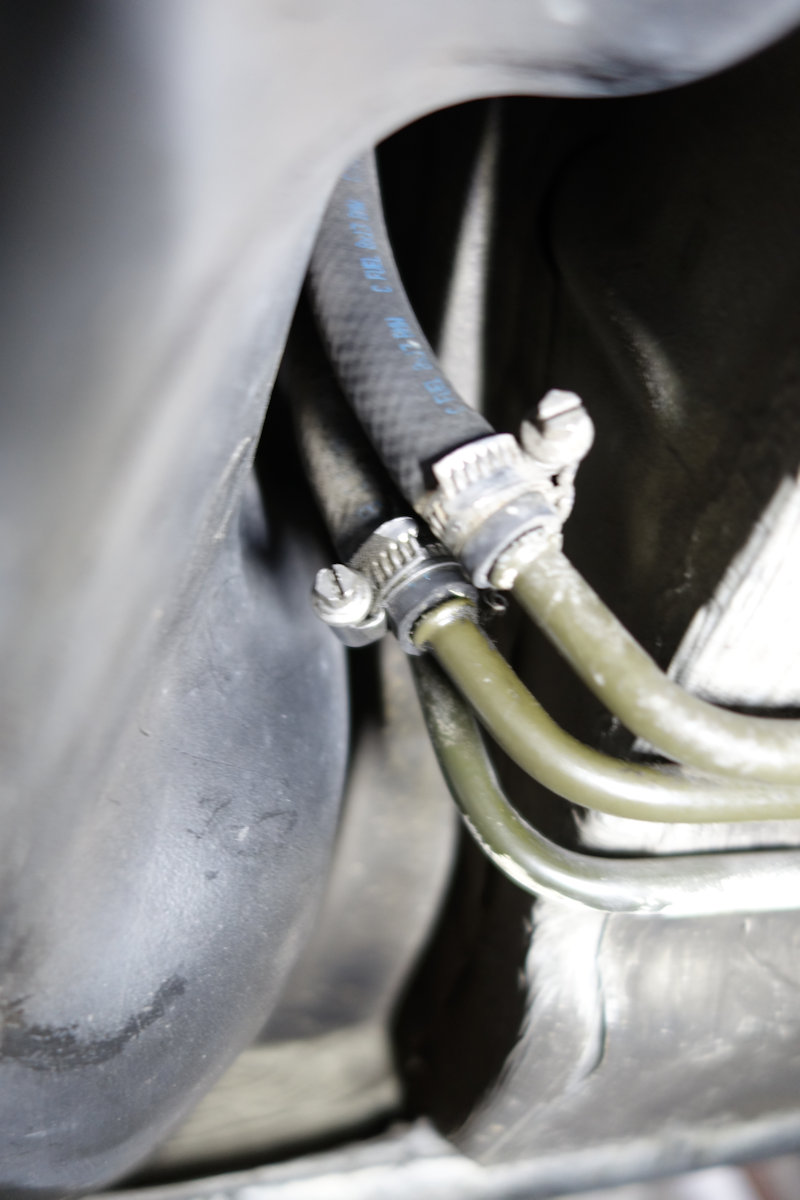 スタンドでタイヤを入れ替える際に、燃料タンクから