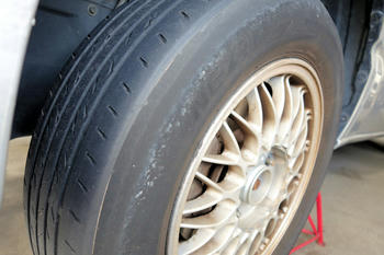 反対側のタイヤも同じように偏摩耗し、こちらもバースト寸前。