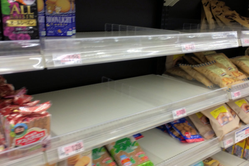 先日の雪の記憶が新しいせいか、早々と買い物をして退散したようです。