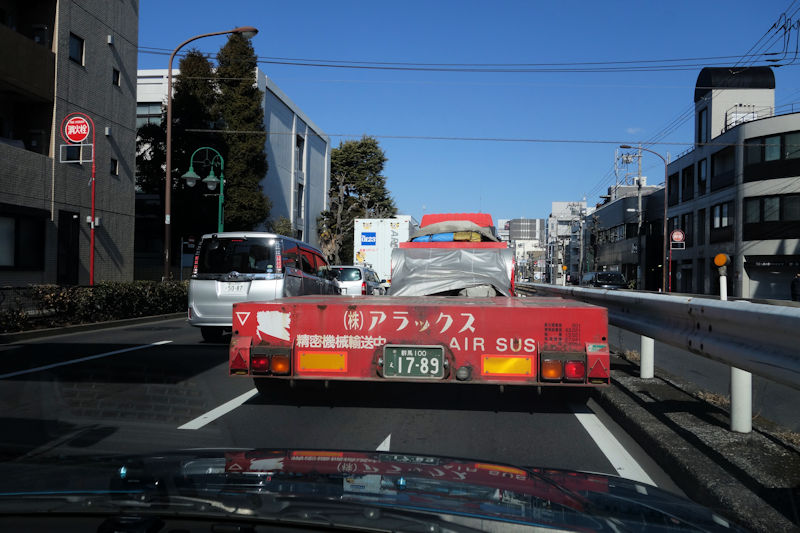 検査場へと向かういつもの道。今日は遠くが霞んでいます。