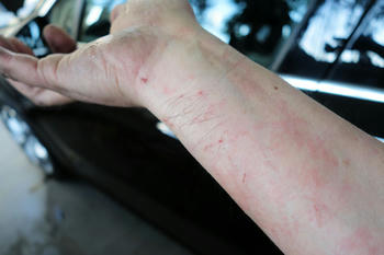 腕が傷だらけ~。今晩の風呂が滲みそうです‥