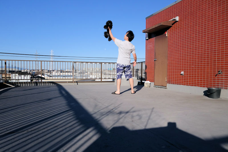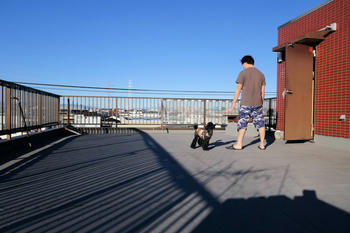 でも私は、朝起きてから愛犬キャビィを屋上に連れて行き、