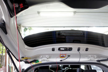 セダンなら楽なのですが、ハッチバックのお車は配線が大変。(^_^;)