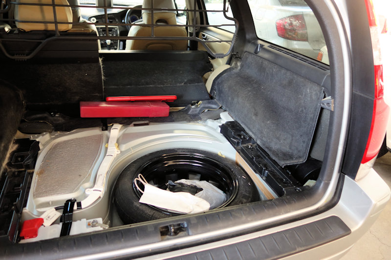 荷室の内張の中に手を突っ込み、棒を引っ張ってロックを解除。
