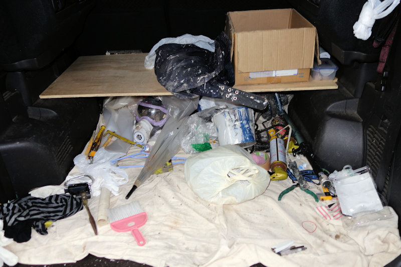 置く場所がなく、とりあえず作業をしていた車の後部座席に置いたのですが、