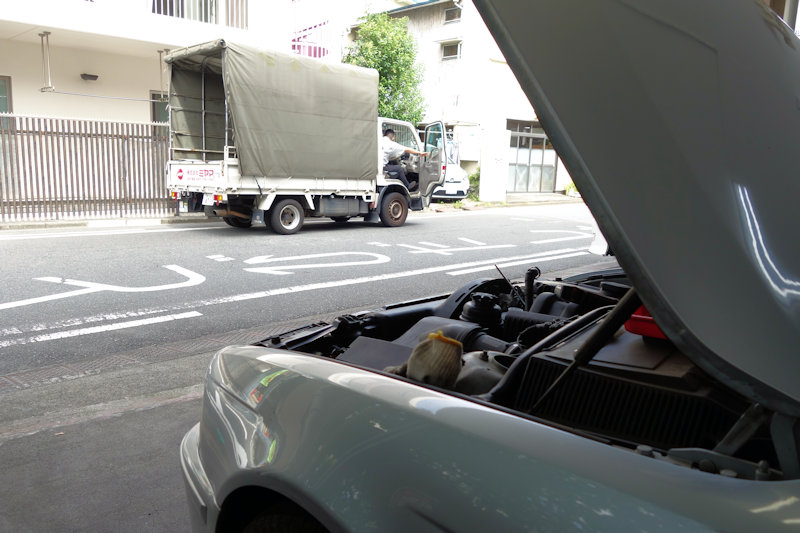 先日納めた、停車中にエンジンが止まるお車が再入庫。