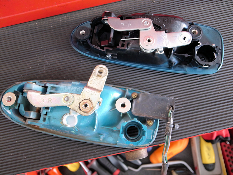 さてドアですが改めてみると、ドアの内側にある補強部品が