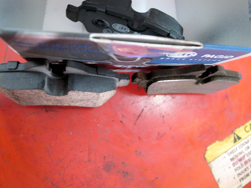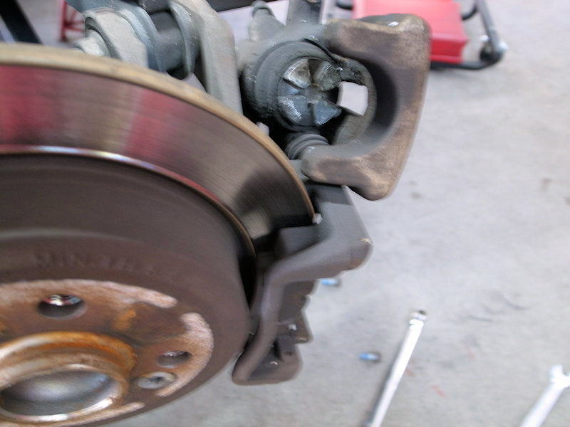 ブレーキをバラし、ピストンを戻して新しいパットを装着。